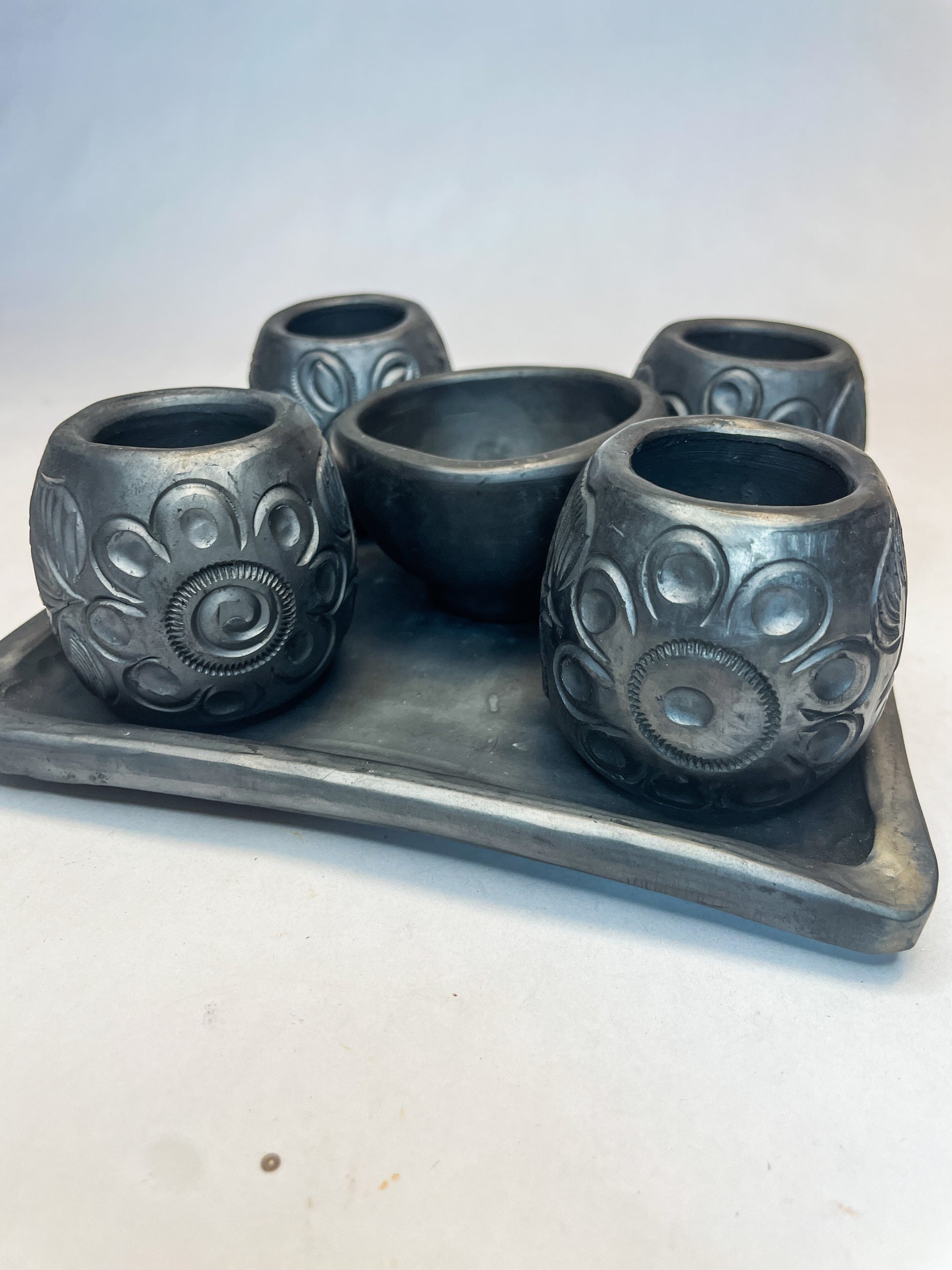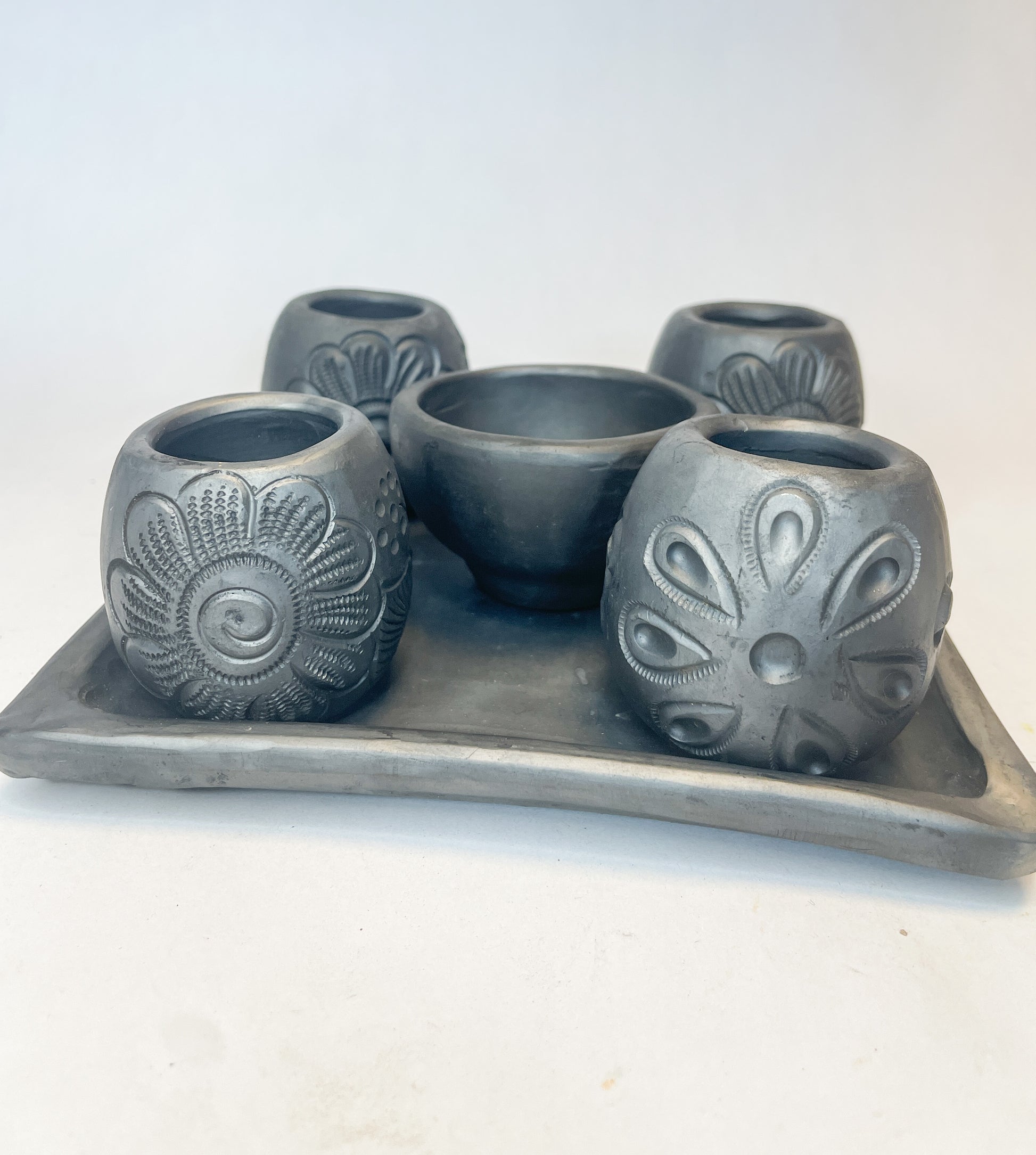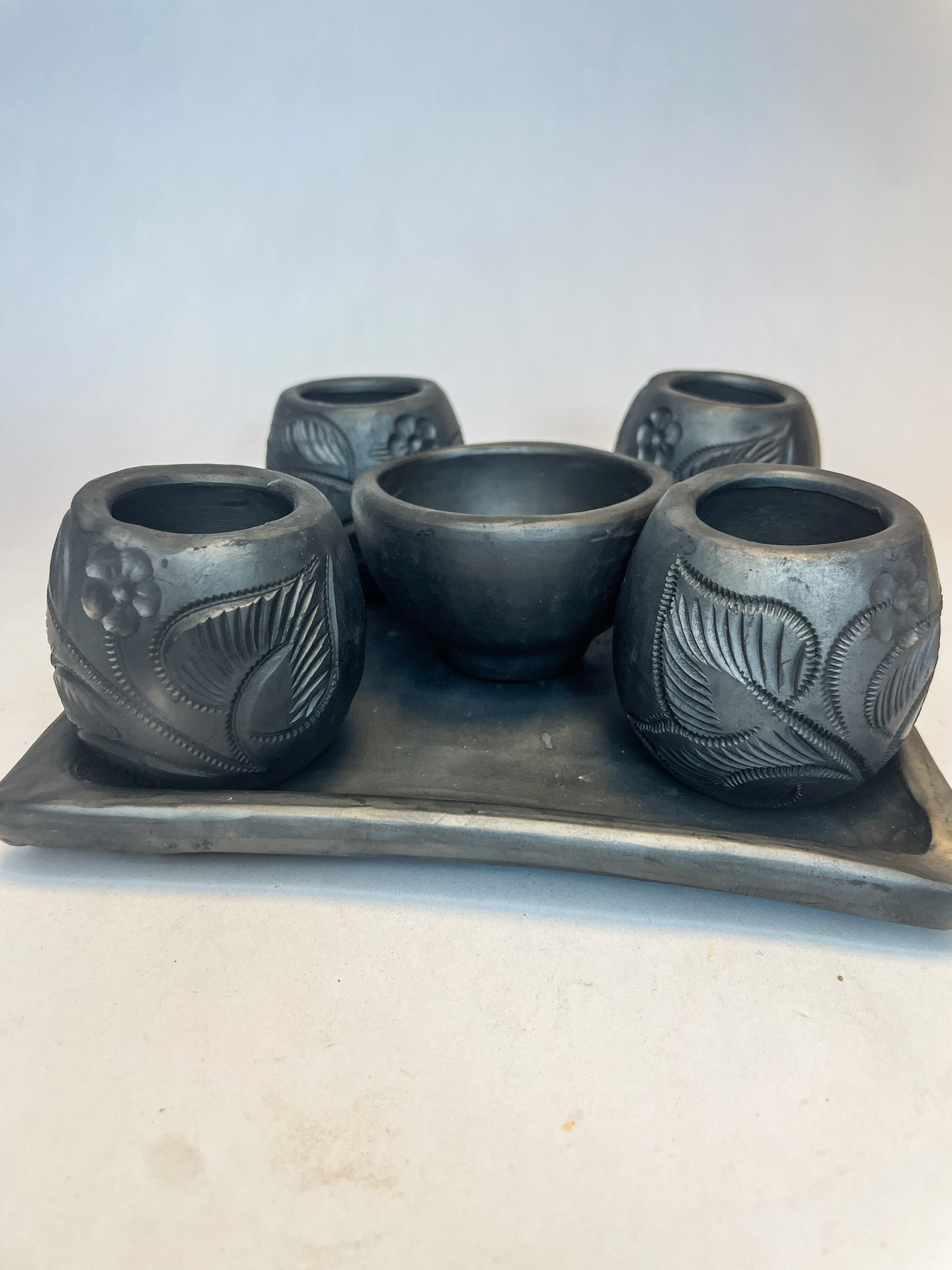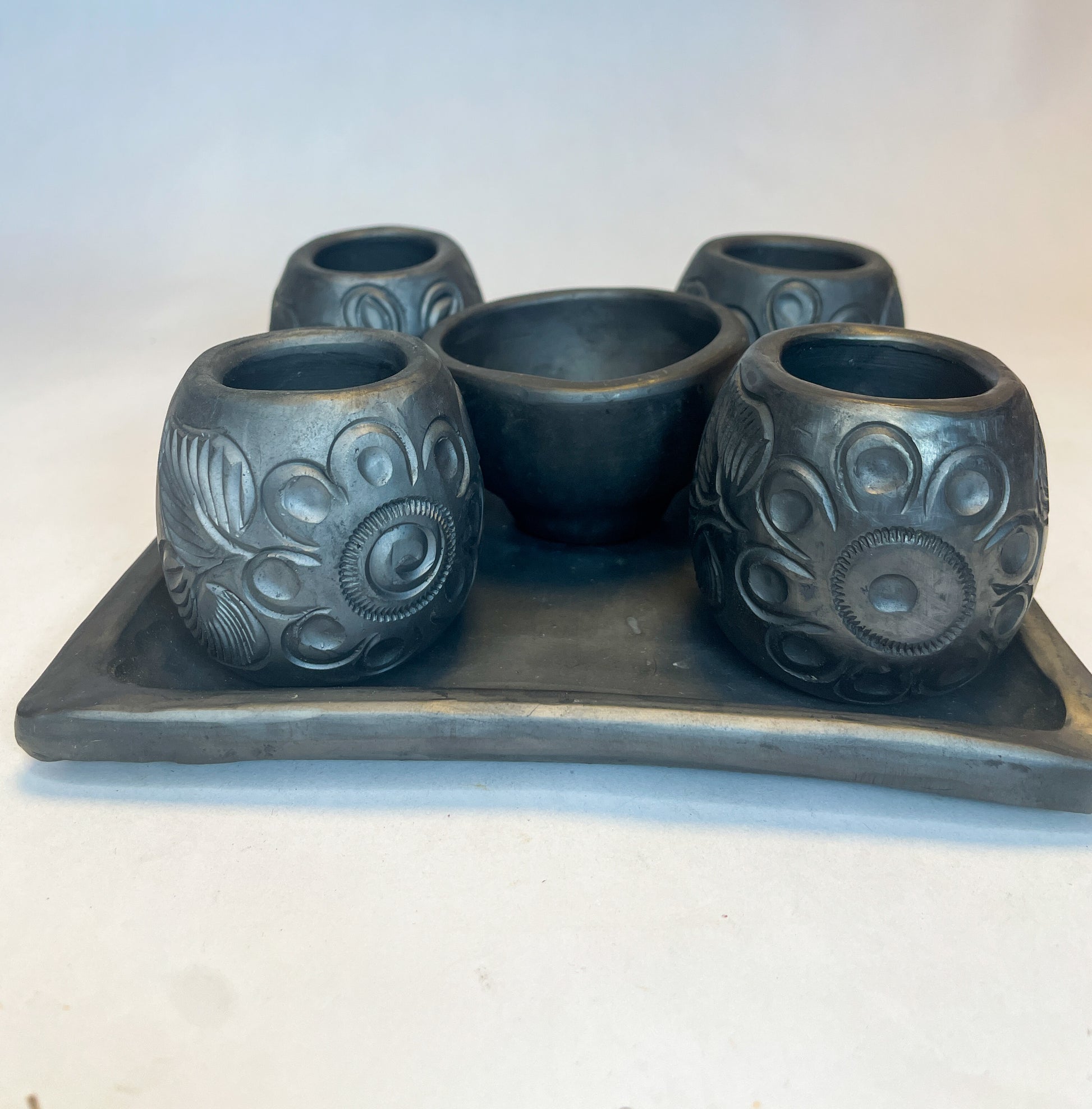 Oaxaca Black Pottery Tequila Shot Set 6 Pc Juego Tequilero Barro Negro