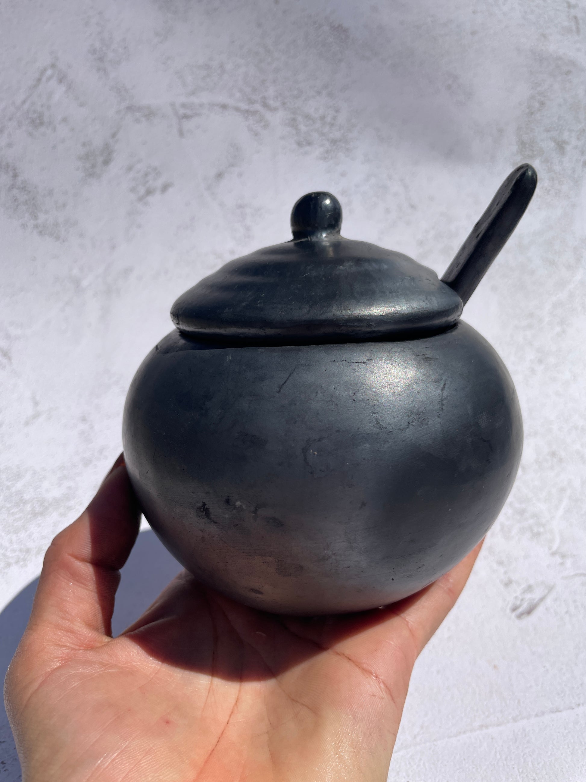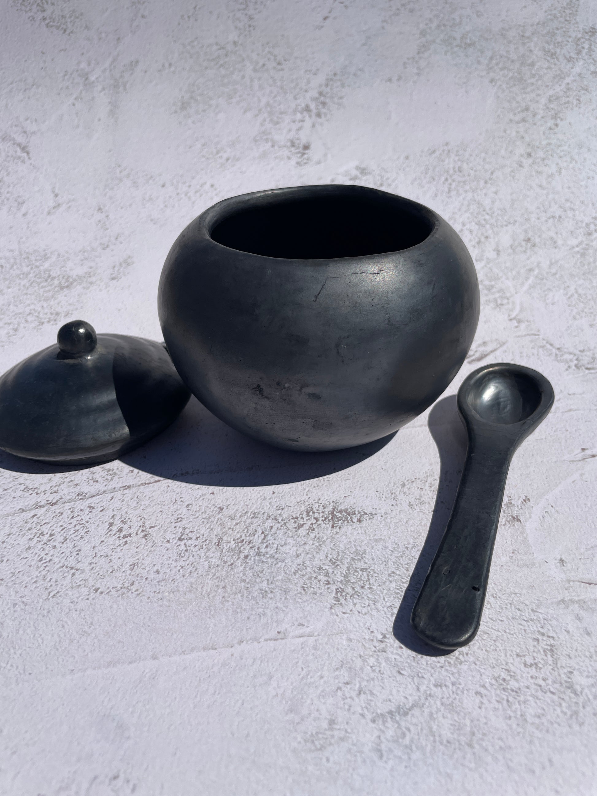 Oaxaca Black Pottery - Pottery Sugar Bowl with spoon