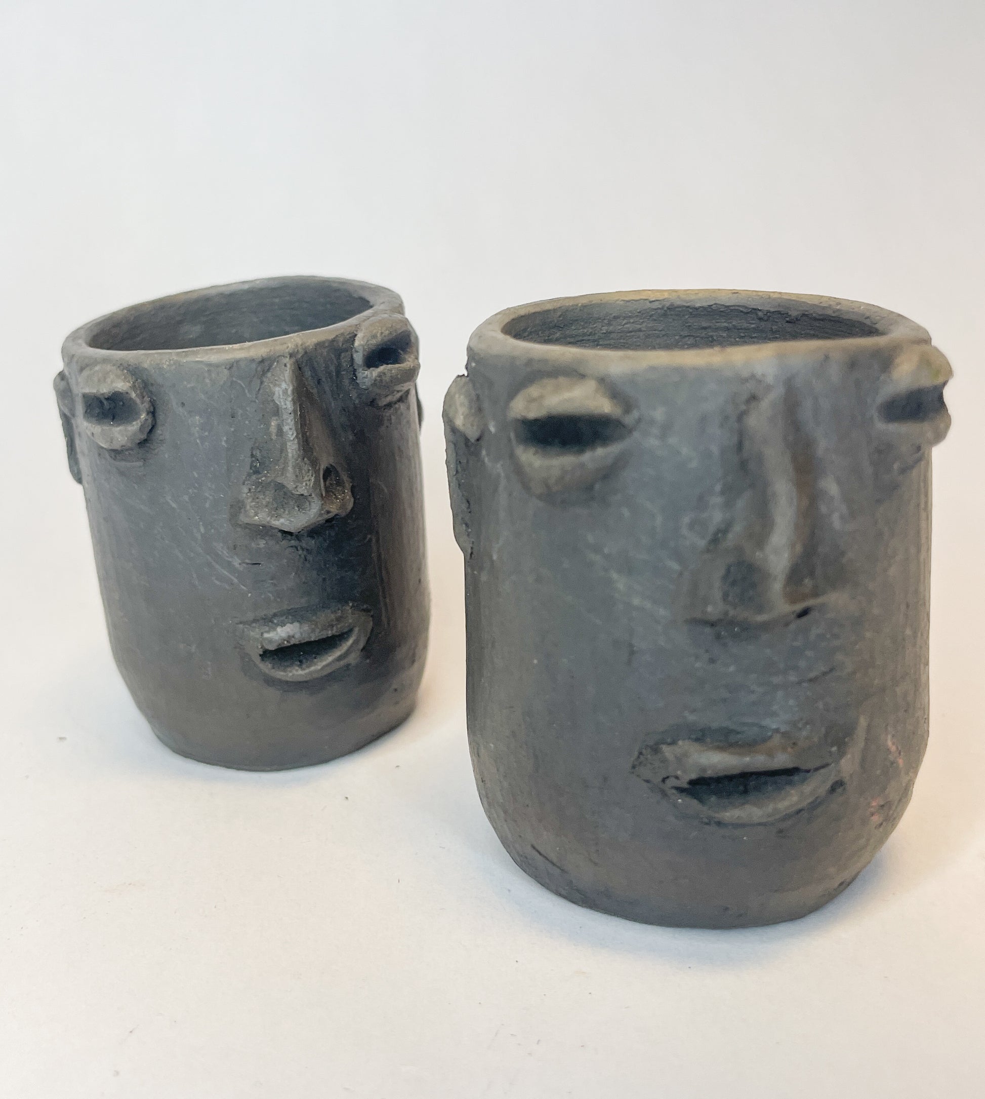 Oaxaca Face Tequileros Set of 2 Vasos de Cara Mexican Clay Cups Oaxaca Pottery Mezcaleros