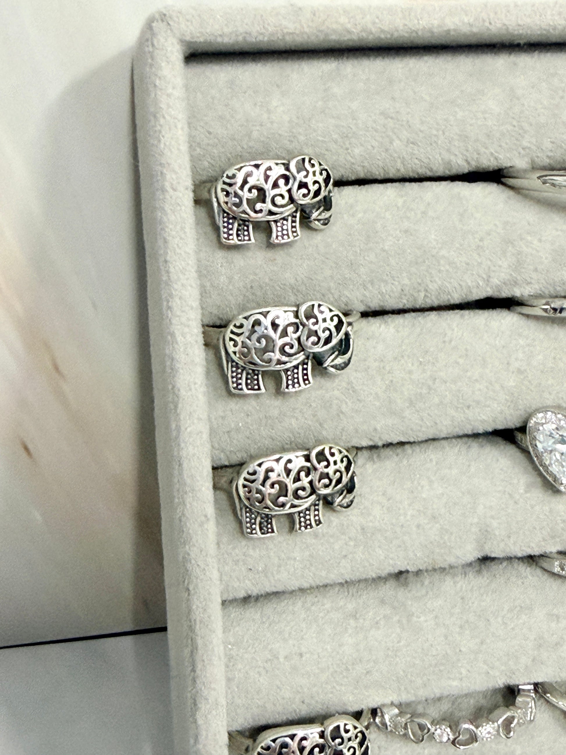 El elefante es reconocido en distintas culturas como un símbolo de prosperidad, energía positiva y protección, convirtiendo este anillo en mucho más que un accesorio: es una joya con intención. Su acabado pulido resalta el brillo natural de la plata y ofrece durabilidad, ideal para uso diario o ocasiones especiales.