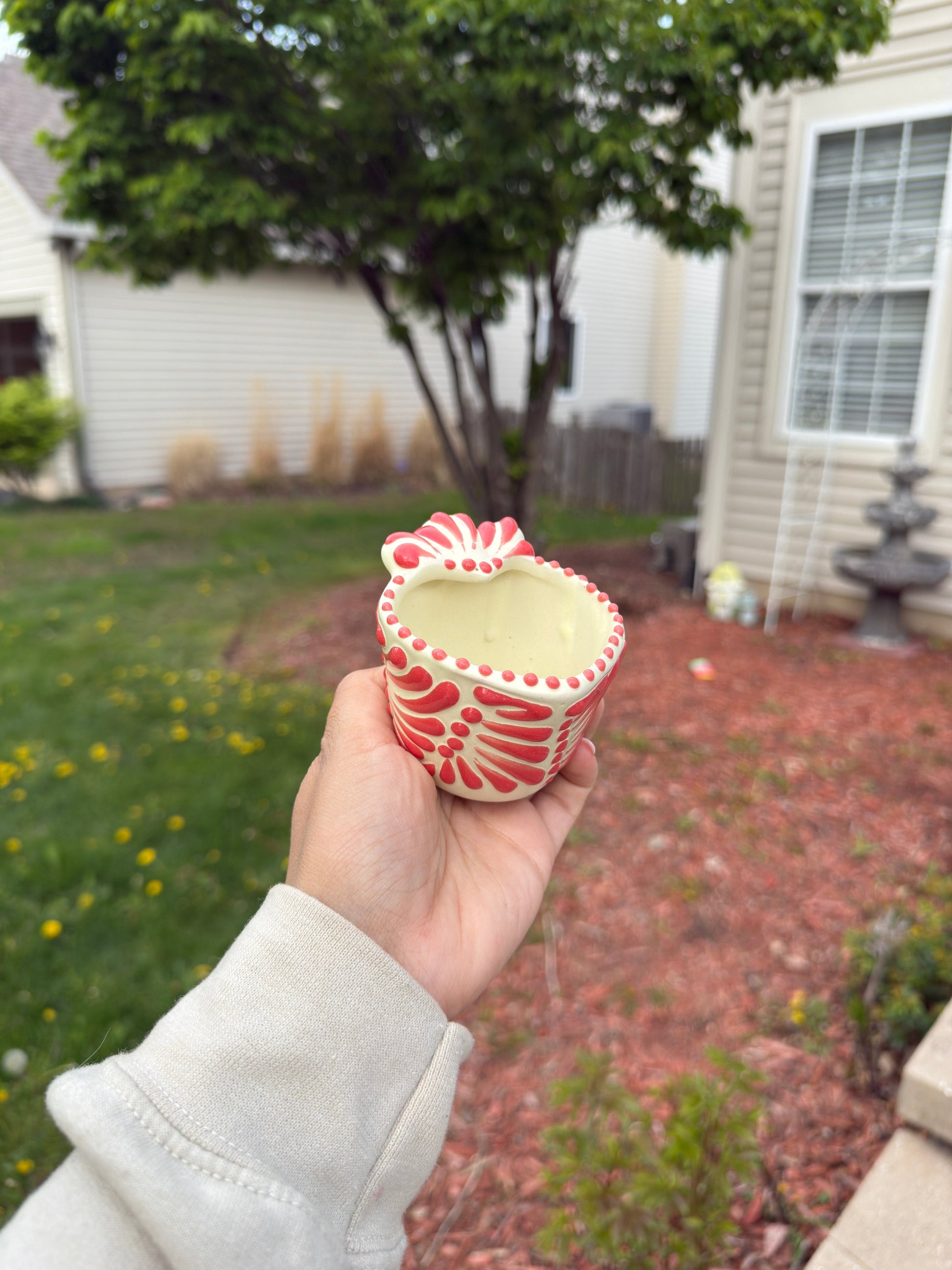 Celebrate Mexican craftsmanship with our Talavera Red/White heart-shaped tequila shot glasses, beautifully hand painted by artisans in Mexico. Each painted talavera shot features traditional patterns and vibrant colors, making every piece unique. These ceramic shot glasses are perfect for enjoying a classic Mexican tequila shot or displaying as authentic dƩcor. Crafted with care, this talavera tequila glass blends function, culture, and heart.