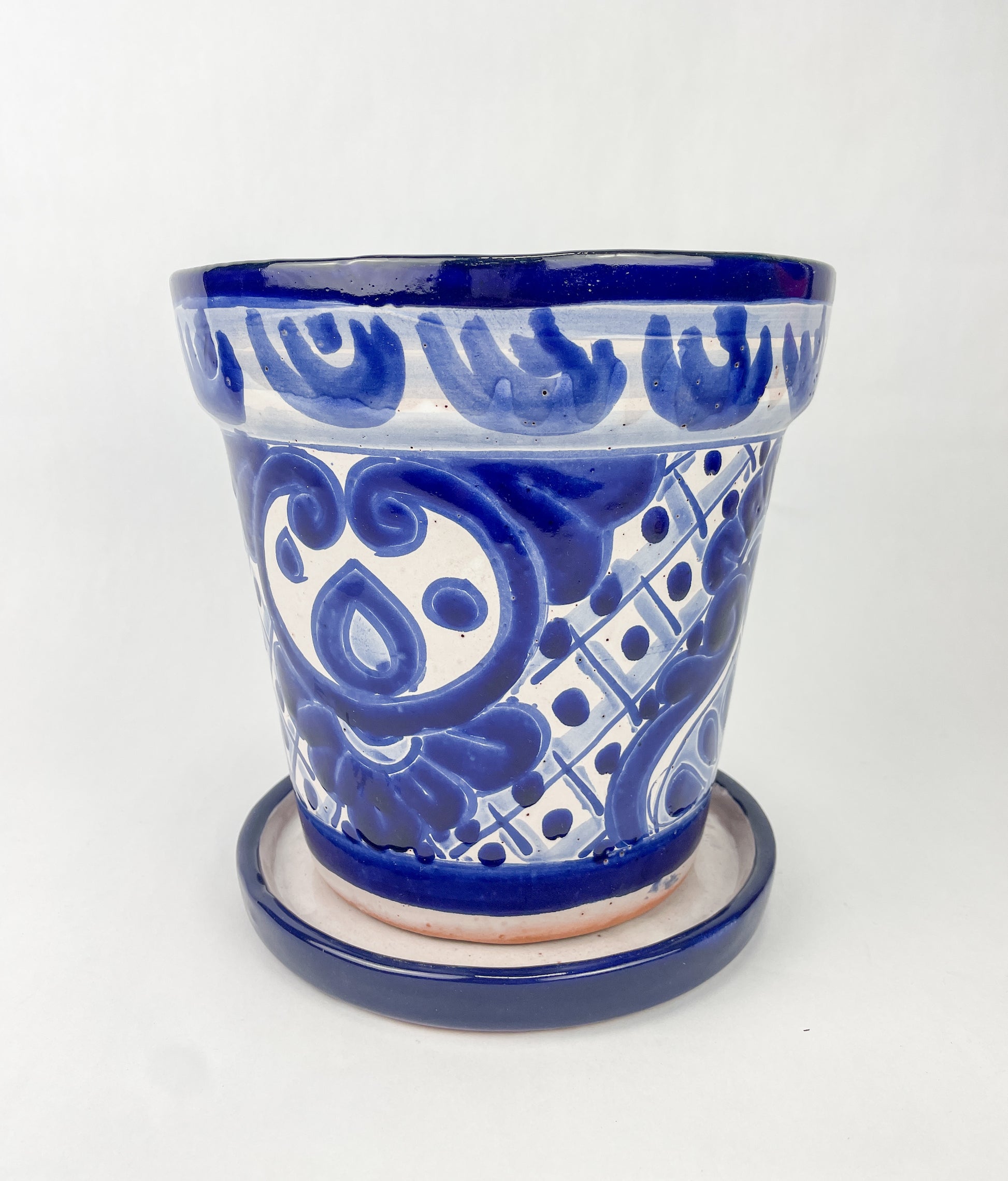 Talavera Mexican Flower Pot With Saucer Maceta Con Plato Blue
