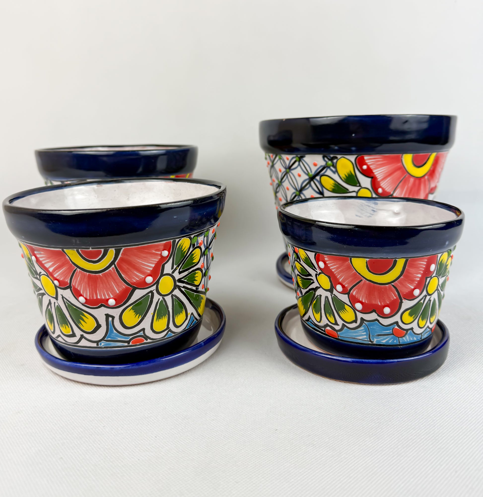 Talavera Mexican Flower Pot With Saucer Maceta Con Plato Colorful Blue