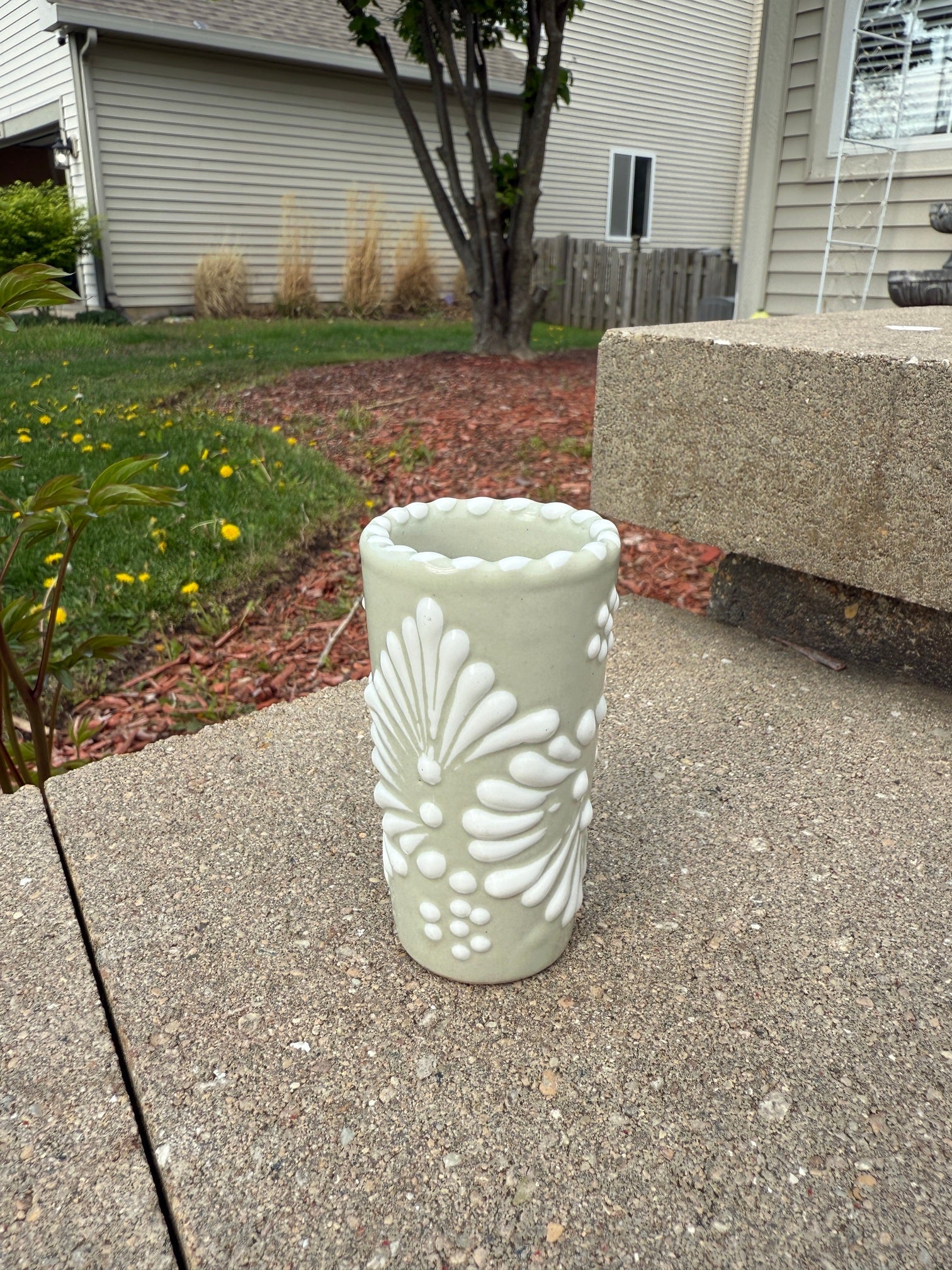 Talavera Tequilero Shot Glass Beige/White - Vaso Tequilero Blanco