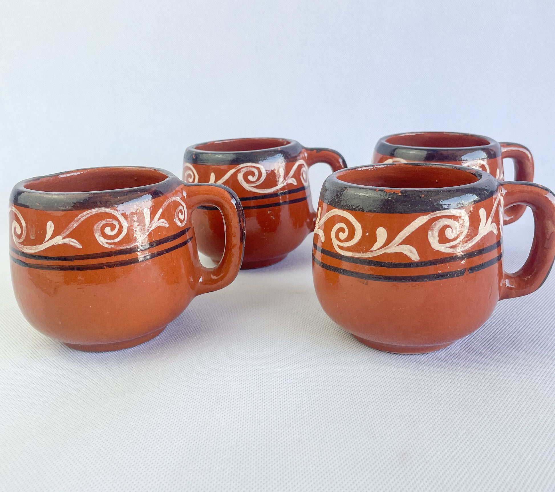 Michoacan Mexican Clay Mugs 4pc Set Mexican Cups Tazas De Barro Lead Free
